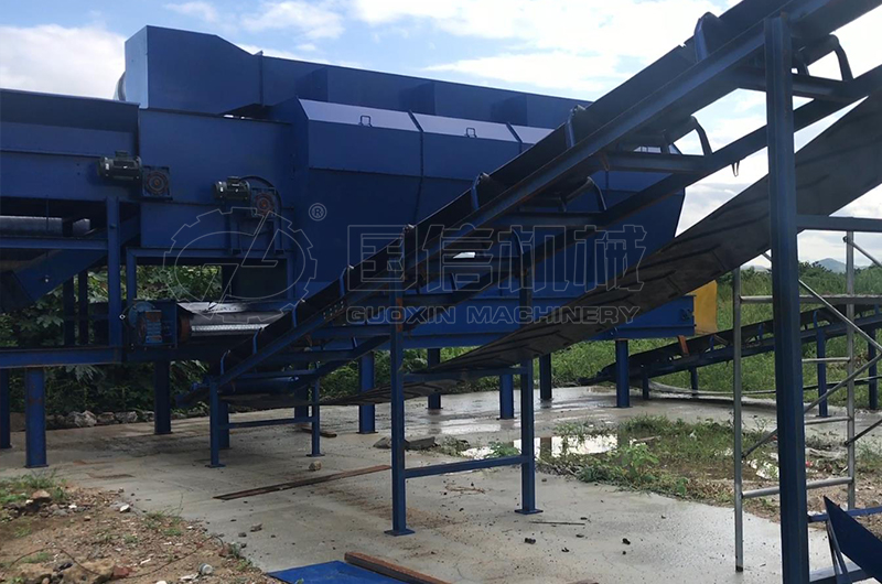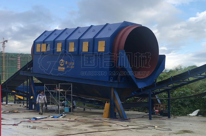滾筒篩分機的主要結(jié)構(gòu)為篩分筒,篩分筒由多個圓形篩孔組成。滾筒篩分設備的整體和地面平面呈傾斜狀態(tài),外部由隔離罩密封,避免對環(huán)境造成污染。在使用變速器時,滾筒篩以一定的速度旋轉(zhuǎn)。材料從上到下通過設備,然后通過篩分離。細料從篩分筒的前端和下端排出,粗料從篩分筒的下端排出。