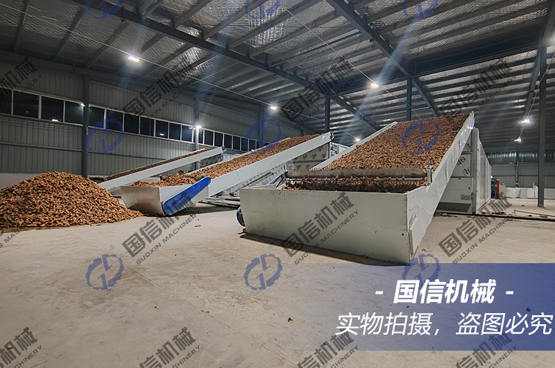 大型流水線地黃烘干機,采用的是多層循環(huán)翻轉(zhuǎn)結(jié)構(gòu),經(jīng)清洗加工后的地黃會經(jīng)過上料輸送機均勻地送入烘干主機內(nèi)部,會在內(nèi)部多層不銹鋼網(wǎng)帶的傳送下,循環(huán)翻轉(zhuǎn),與此同時,熱源提供的熱量,會在引風機的作用下,以熱風的形式進入烘干主機底部,熱風會自下而上的逐層穿過不銹鋼網(wǎng)帶物料層,帶走其中的水分,從烘干主機頂部排出,達到地黃干燥效果。