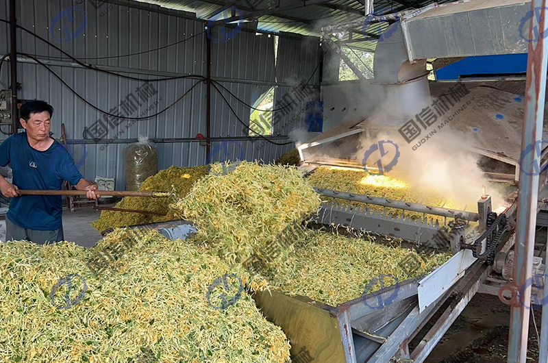 國信烘干機(jī)廠家通過對(duì)市場上人們干制金銀花的需求進(jìn)行研究,推出了全自動(dòng)流水線的金銀花烘干加工設(shè)備-大型全自動(dòng)金銀花烘干機(jī)設(shè)備。