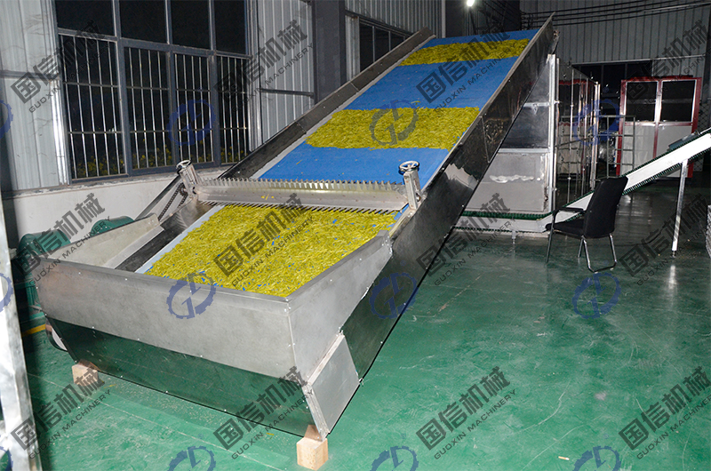 黃花菜全自動(dòng)殺青烘干流水線設(shè)備具有規(guī)?;?、大批量、連續(xù)式加工生產(chǎn)的效果,一次開機(jī)就能夠?qū)Σ烧蟮乃悬S花菜實(shí)現(xiàn)干制加工,產(chǎn)量非常大時(shí),還能夠24小時(shí)連續(xù)生產(chǎn),具有閃蒸、殺青、烘干的一體化功能,日處理可達(dá)萬斤至十幾萬斤。使用這種新型黃花菜殺青烘干一體機(jī)整個(gè)加工過程,只需1~2人即可完成,改變了傳統(tǒng)烘干勞動(dòng)力強(qiáng)度大的缺點(diǎn),干燥時(shí)間也縮短了3分之二以上,也大大的節(jié)約了成本,熱源方面可以選擇燃煤、燃生物質(zhì)顆粒、天然氣、蒸汽、電(空氣能熱泵)等類型,然后搭配國(guó)信廠家的換熱系統(tǒng),置換出純凈的熱風(fēng)對(duì)黃花菜干制加工,不會(huì)對(duì)其品質(zhì)造成污染,再加上智能化控制系統(tǒng),可以提升烘干品質(zhì),是集中產(chǎn)業(yè)化黃花菜烘干的理想設(shè)備。