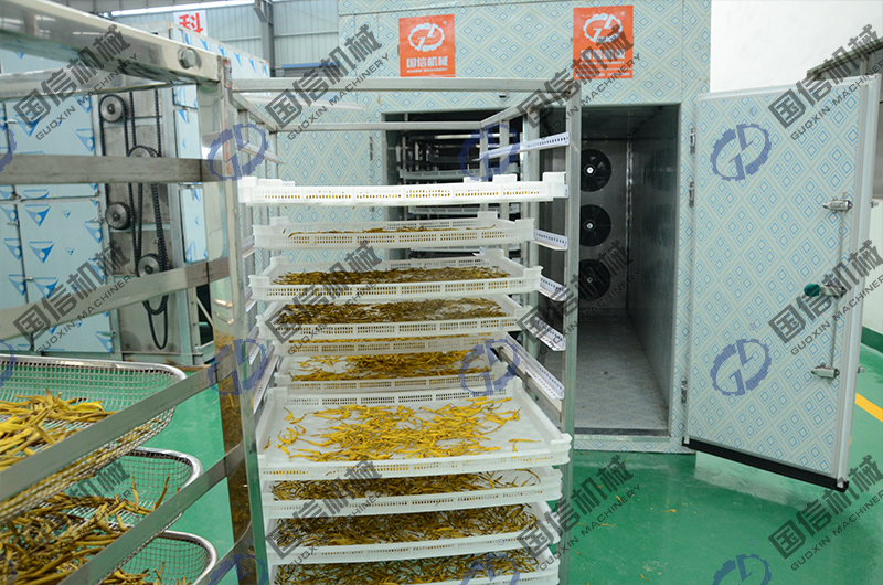 國(guó)信廠家推出的新型黃花菜殺青烘干一體機(jī)主要有兩種:一種是可以實(shí)現(xiàn)全自動(dòng)化殺青烘干加工的大產(chǎn)量流水線設(shè)備,另一種是中小產(chǎn)量的空氣能熱泵殺青烘干房設(shè)備。