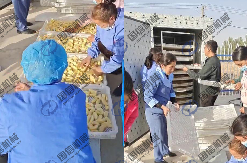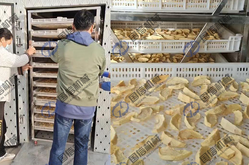中小型空氣能熱泵烘干機其實是目前主流的果蔬烘干設備,可日烘干處理果蔬兩百公斤到3噸左右的產量需求,采用的是靜態(tài)烘干模式,主要是由提供穩(wěn)定熱源的熱泵主機、高保溫性能的聚氨酯板房、耐高溫高濕環(huán)境的軸流風機和精致的推車托盤組成,工作原理是:通過將切分后的果蔬均勻平鋪到托盤,放置在推車上后,送進烘干房,烘干房的熱源系統(tǒng),熱泵烘干機會提供穩(wěn)定熱源,然后在循環(huán)風機的作用下,對烘干房內的果蔬片、條、粒等進行烘干。熱泵烘干機產生的是純凈的熱風,烘干房內部也是密閉的環(huán)境,因此整個烘干環(huán)境不會使果蔬受到任何的外界污染物侵入,烘干品質非??煽俊?