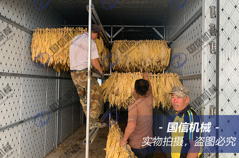 二、完成變黃溫度控制在40~42℃以下,保持濕球溫度35~37℃,達到煙葉基本全黃,充分凋萎塌架,主脈發(fā)軟,確保煙葉轉化充分,形成更多的香氣基礎物質。所以,在41 ~ 42℃要適當延長時間,使煙葉達到黃片青筋微帶青,葉片充分凋萎塌架,主脈發(fā)軟。