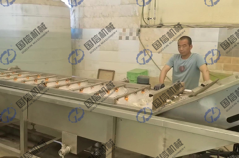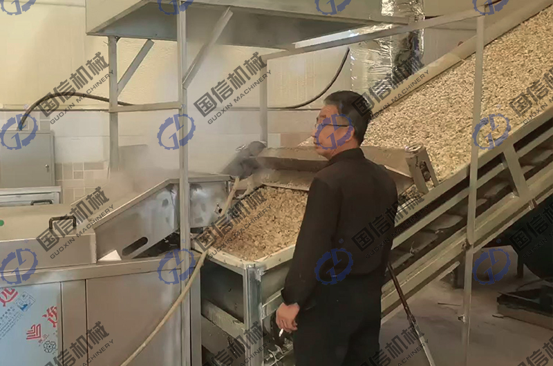 高溫煮燙:煮燙是干燥加工的關(guān)鍵環(huán)節(jié),是著色保質(zhì)的保障。高溫煮燙可在不銹鋼(預(yù)煮)漂燙殺青機(jī)中進(jìn)行,漂燙蒸煮機(jī)的蒸煮時間溫度都可以調(diào)節(jié),蒸煮過程中不需要人員操作,省工省力!百合分季的含淀粉不一樣,蒸煮時間也不一樣,煮燙的時間以原料略軟,掰斷鱗片時有清脆響聲,有較強(qiáng)彈性為度。 高溫煮燙的操作要掌握好,熱燙溫度和時間達(dá)不到,在干燥過程中就會氧化褐變;如果熱燙過度,鱗片煮爛,干燥后則鱗片容易破裂或形成魚鱗片,色澤加深,影響制品的外觀質(zhì)量。
