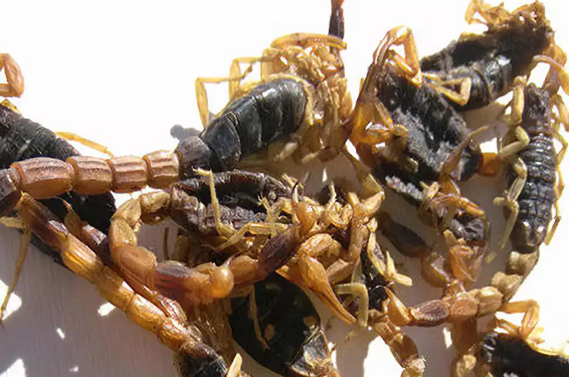 1、首先,蝎子帶回來后,先放置三至五天,在容器里不停爬動,自然消耗體內(nèi)雜物。